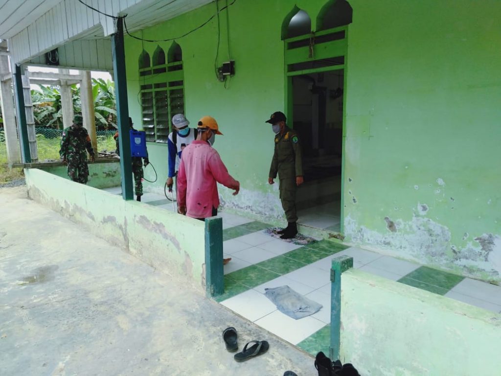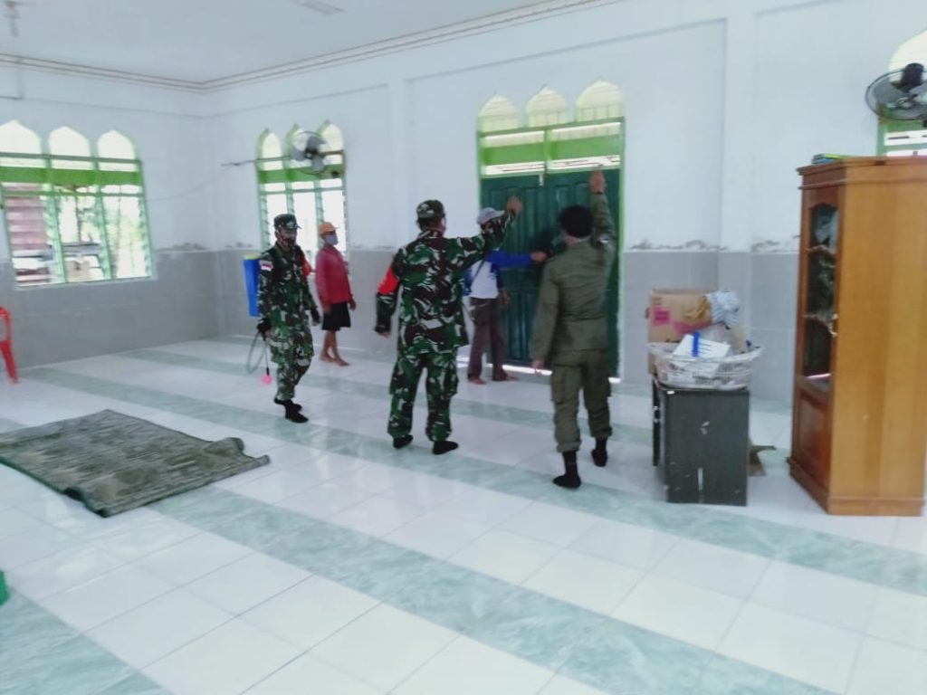 Sebatik,Nunukan – Sabtu tanggal 13 Februari 2021 pukul 08.30 wita bertempat di Masjid Nurul iman RT 02 Dusun Rawa Jadi Desa Maspul Kec. Sebatik Tengah, Kab. Nunukan, Prov. Kaltara, seluruh Babinsa Sekecamatan Sebatik Tengah yang dipimpin oleh Sertu Elio Da Silva melaksanakan Penyemprotan cairan Disinfektan dalam rangka pendisiplinan protokol kesehatan khusus PPKM berbasis mikro