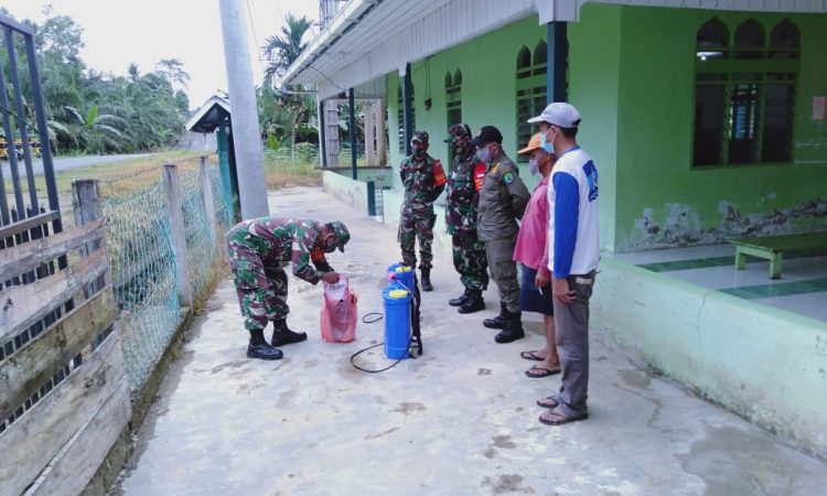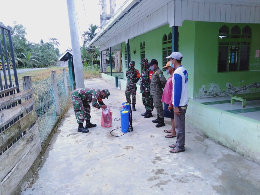 Sebatik,Nunukan – Sabtu tanggal 13 Februari 2021 pukul 08.30 wita bertempat di Masjid Nurul iman RT 02 Dusun Rawa Jadi Desa Maspul Kec. Sebatik Tengah, Kab. Nunukan, Prov. Kaltara, seluruh Babinsa Sekecamatan Sebatik Tengah yang dipimpin oleh Sertu Elio Da Silva melaksanakan Penyemprotan cairan Disinfektan dalam rangka pendisiplinan protokol kesehatan khusus PPKM berbasis mikro