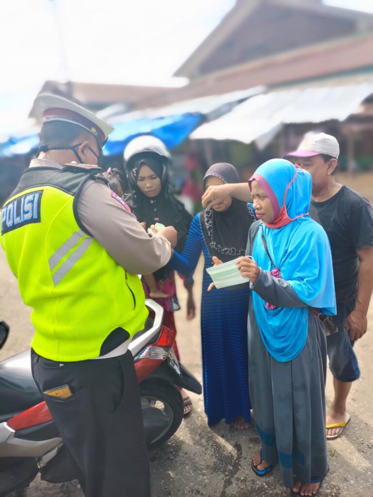 Sinjai – Berandankrinews.com. Satuan Lalu Lintas (Satlantas) Kepolisian Resort (Polres) Sinjai melaksanakan kegiatan bagi bagi masker gratis kepada warga pengunjung pasar dan pengendara. Bertempat dipasar Sentral Sinjai, Rabu pagi (16/6/2021)
