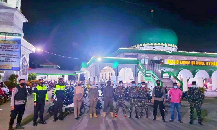 “Sinergitas TNI-Polri, Satpol.PP dan GP Ansor pengamanan Masjid pelaksanaan Sholat Tarawih berjamaah untuk memberikan rasa aman, nyaman kepada umat muslim yang melaksanakan shalat Tarawih. Ujarnya.
