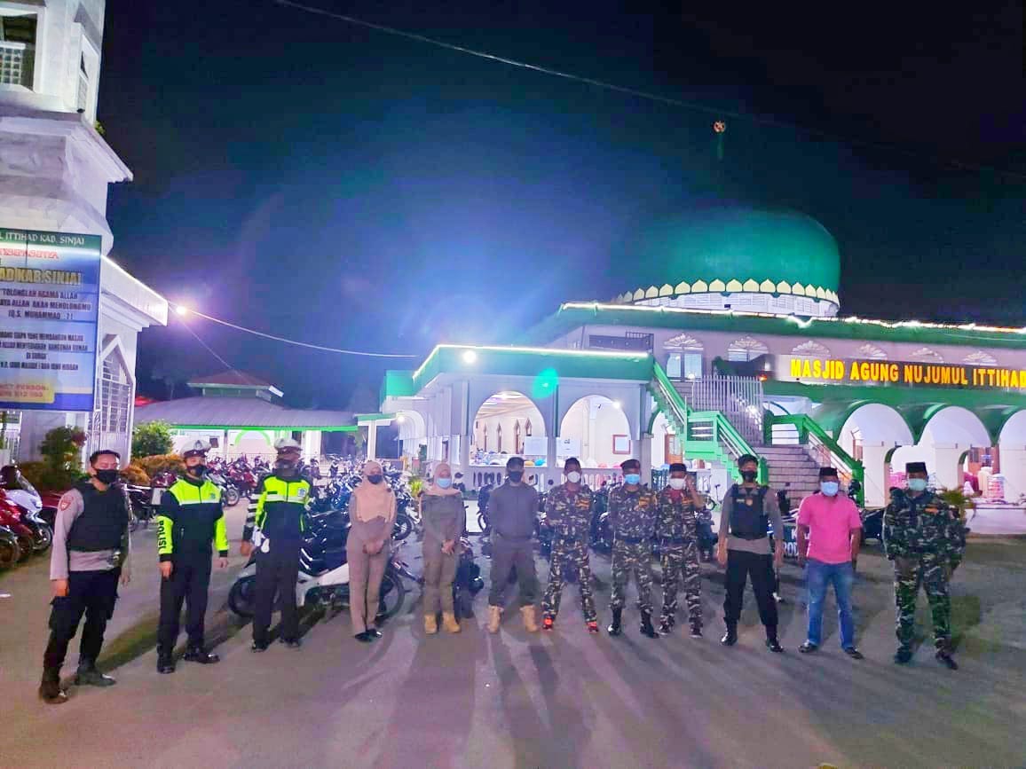 Ciptakan Rasa Aman ,polres Sinjai jaga Sinergitas dengan TNI , Satpol PP dan GP Ansor PAM Sholat Tarwih