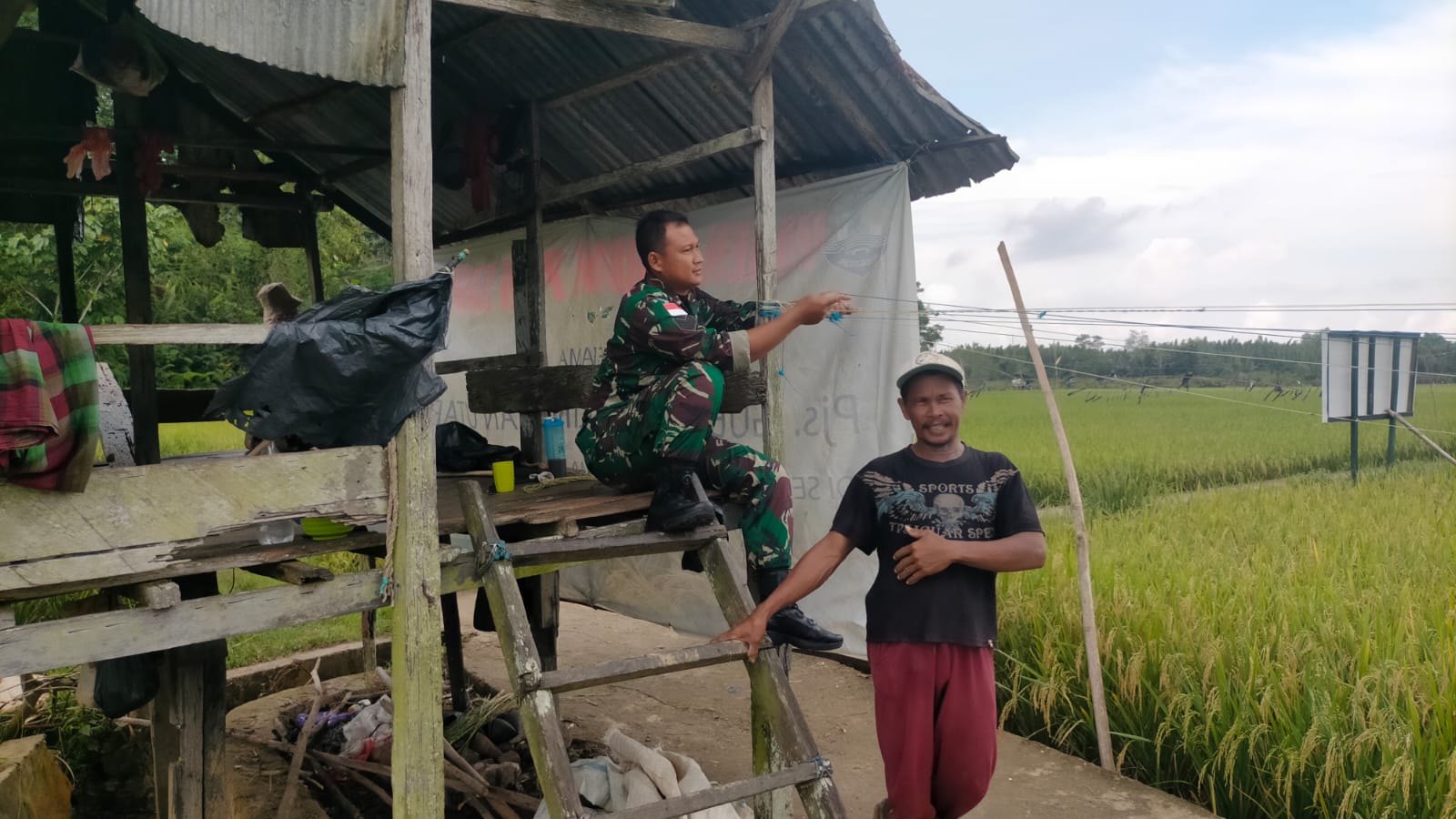 NUNUKAN – Serka Aditya bersama kelompok tani Matirowalli terus melakukan perawatan dan pengecekan pertumbuhan lahan sawah yang ditanami.