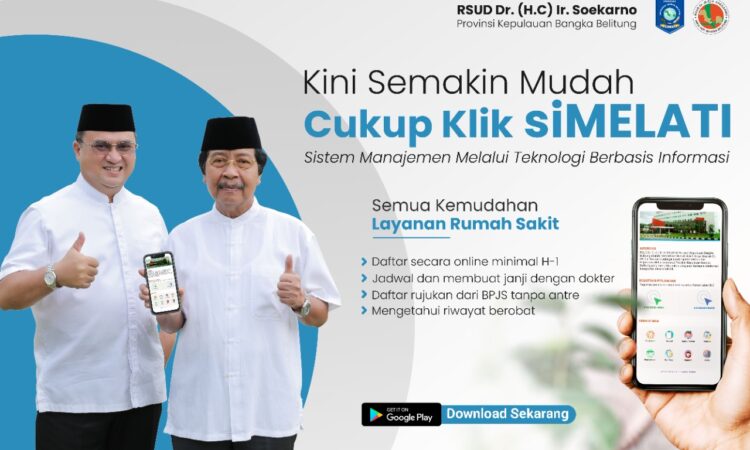 Melalui aplikasi siMelati, masyarakat bisa mendaftar secara online. siMELATI adalah singkatan dari Sistem Manajemen Teknologi Berbasis Informasi. Sistem ini merupakan layanan pendaftaran online yang memudahkan masyarakat mendaftar tanpa harus hadir di RSUD Dr. (H.C.) Ir. Soekarno Hatta, yg merupakan akselerasi inovasi layanan Sistem Informasi Manajemen Rumah Sakit (SIMRS) di RSUD Dr. (H.C.) Ir. Soekarno Hatta Provinsi Kepulauan Bangka Belitung (Babel).