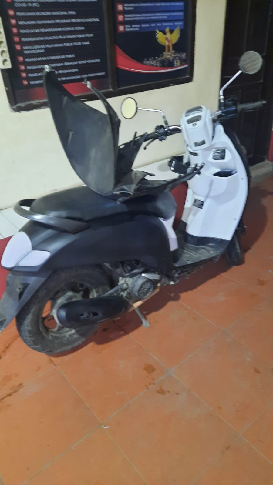 Bahwa pada hari Minggu tanggal 27 Juni 2021 sekira jam 03.00 wita telah terjadi Pencurian Motor merk HONDA SCOOPY warna hitam putih dengan No. Pol DW 2906 EH, No. Rangka MH1JM3110HK184352, No. Mesin JM31E-1194052 yang mana korban memarkir motornya dihalaman rumah temannya yang tidak sempat mengunci leher Motor tersebut ,lalu korban masuk tidur / bermalam.