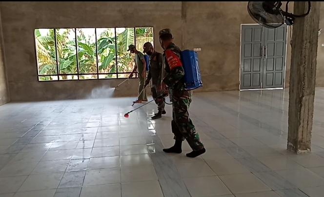Kegiatan penyemprotan cairan disinfektan dalam rangka pelaksanaan pendisiplinan protokol kesehatan khusus PPKM berbasis Mikro di Masjid Al- Arif RT 02 Desa Lapri Kec. Sebatik Utara yang dilaksanakan oleh personil Babinsa Sekecamatan Sebatik Utara bertujuan untuk mensterilkan fasilitas umum (tempat beribadah) dari virus Corona guna mencegah atau memutus penyebaran virus tersebut dan dihimbau kepada seluruh masyarakat agar tetap mematuhi protokol kesehatan dengan benar yaitu menerapkan 5M Memakai Masker, Mencuci Tangan diair yang mengalir memakai sabun, menjaga jarak , Menghindari Kerumunan dan Mengurangi/Membatasi mobilitas yang kurang penting.