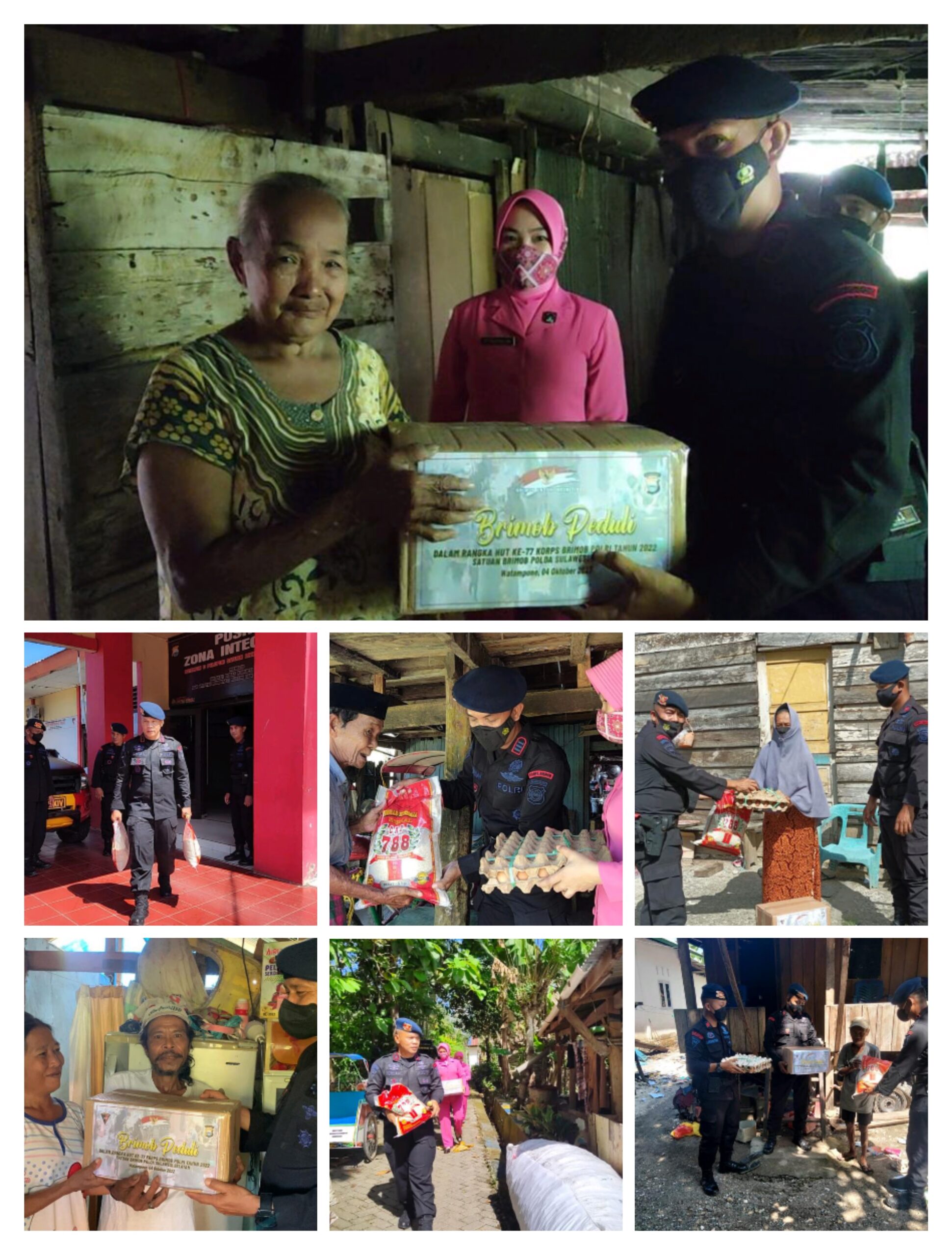 Watampone.Berandankrinews.com. Dalam rangka Hari Ulang Tahun (HUT) Ke 77 Korps Brimob Polri, Batalyon C Pelopor Satbrimob Polda Sulsel menyalurkan 100 paket sembako, Selasa (04/10/2022).