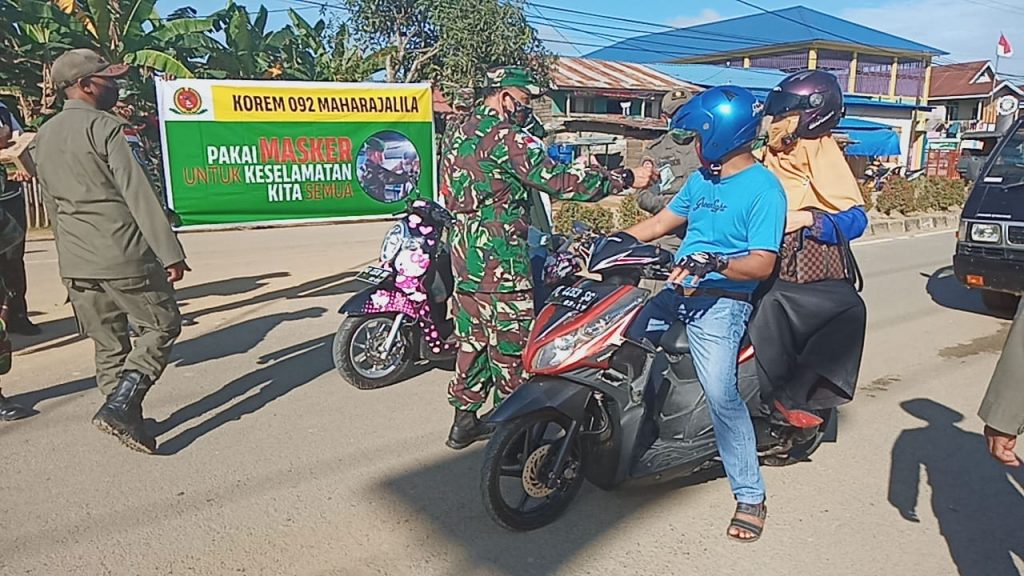 Sebatik,Nunukan – Hari Kamis tanggal 04 Pebruari 2021 Pukul 07:30 Wita, bertempat di halaman Kantor Sahbandar RT 04 Dusun H. Beddu Rahim 04 Desa Sei. Pancang Kec. Sebatik Utara Kab. Nunukan Prov. Kalimantan Utara Komandan Koramil 0911-02/Sbt Mayor Arm Mohammad Bakri memimpin Personil gabungan Koramil 0911-02/Sbt dan Unsur Muspika Kec. Sebatik Utara melaksanakan Kegiatan Pemberlakuan Pembatasan Kegiatan Masyarakat ( PPKM ) dan pembagian masker serta Hand Sanitizer di Wilayah Koramil 0911-02/Sbt.