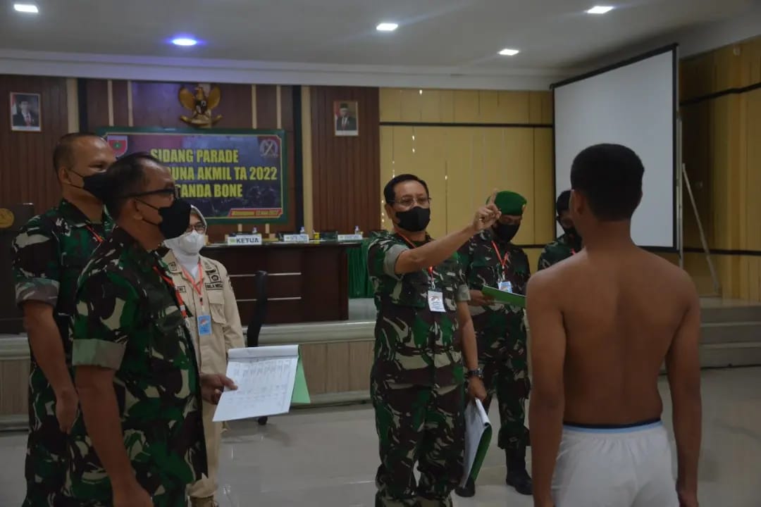 Kapenrem 141/Tp. Mayor Arm Arfan Towasi, menjelaskan. “Sidang Parade yang dilaksanakan ini merupakan salah satu tahapan dalam kegiatan Werving Penerimaan Catar Akmil TA 2022. Dan yang memenuhi syarat dan dinyatakan lulus akan mengikuti seleksi tingkat Panda Makassar. “Jelasnya