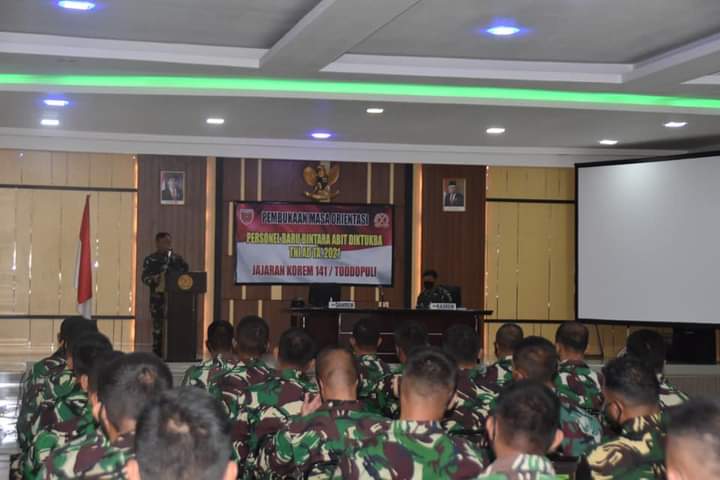 Latihan Orientasi Bintara baru Jajaran Korem 141/Tp adalah tahap awal dari mekanisme kegiatan yang harus dilaksanakan sebelum melaksanakan siklus Latihan. Serta bertujuan untuk melatih bintara baru agar dapat menyesuaikan diri dengan kegiatan, situasi dan kondisi sehingga nantinya dapat menunjang tugas pokok di satuan masing-masing. “Tambahnya.