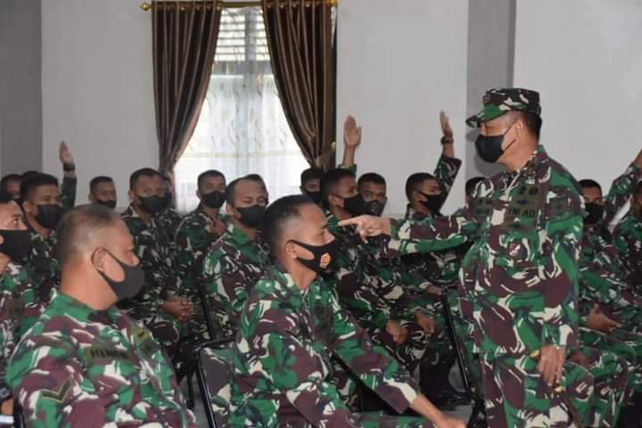Hadir pada kegiatan tersebut, Kasrem 141/Tp. Kolonel Arh Elphis Rudy, S.E., M.M.,M.Sc., M.S.S. Para Kasi Kasrem 141/Tp. Para Bintara Baru Korem 141/Tp.