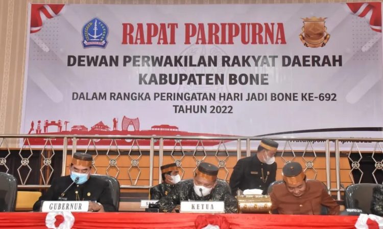 Sambutan Gubernur Sulawesi Selatan yang diwakilkan oleh Sekretaris Provinsi Sulawesi Selatan Abdul Hayat Gani yang intinya mengucapkan Selamat Hari Jadi Bone ke-692 semoga Bone semakin sukses kedepannya. ”