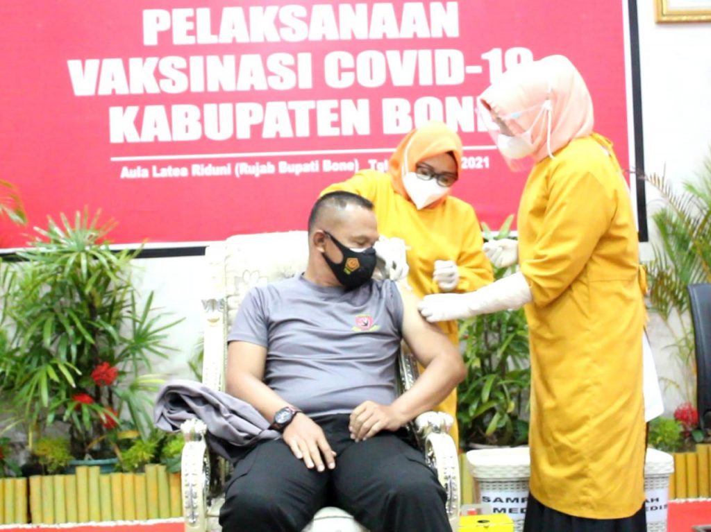 Orang pertama di Kabupaten Bone yang akan menerima vaksin Sinovac buatan negara Cina ini adalah Bupati Kabupaten Bone Dr. H. Andi Fahsar Mahdin Padjalangi, M.Si. dan diikuti oleh Forkompinda dan beberapa pejabat-pejabat publik di lingkungan Kabupaten Bone.