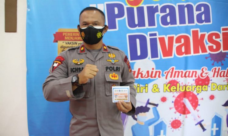 ” Setelah menerima 1 dosis suntikan vaksin Covid 19 dari petugas kesehatan, saya tetap merasa sehat dan tidak merasakan efek samping dari vaksin, jadi saya harapkan kepada masyarakat untuk tidak ragu mengikuti vaksinasi karena sebelum menerima vaksin kita akan melewati beberapa tahapan pengecekan kesehatan untuk menentukan apakah kita bisa divaksin atau tidak,” jelas Danyon C Pelopor yang akrab disapa Danyon Tindizz ini.