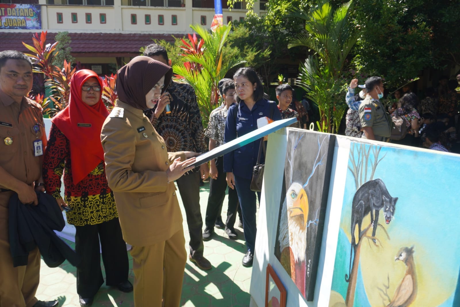 Bupati Laura juga menyerahkan hadiah kepada siswa-siswi yang menjuarai lomba gelar karya dan juga menyerahkan apresiasi kepada 10 guru dan tenaga pendidik SMPN 1 Nunukan yang dipilih langsung oleh siswa siswi dari SMPN 1 Nunukan.