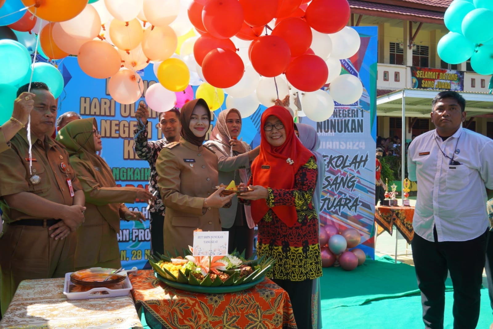 NUNUKAN – Bupati Nunukan Hj. Asmin Laura Hafid menghadiri kegiatan Peringatan Hari Ulang Tahun SMPN 1 Nunukan Ke 43. Selain Bupati, hadir pula Kepala Dinas Pendidikan Kab. Nunukan Ahmad, Anggota DPRD Kab. Nunukan Hj. Nikma, Kepala Sekolah SMPN I Nunukan, Kepala-Kepala sekolah SMP dan SMA yang ada di Nunukan, para Guru Pendidik SMPN 1 Nunukan, serta para Alumni Angkatan 1 sampai angkatan 43, Senin (28/11)