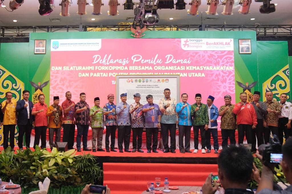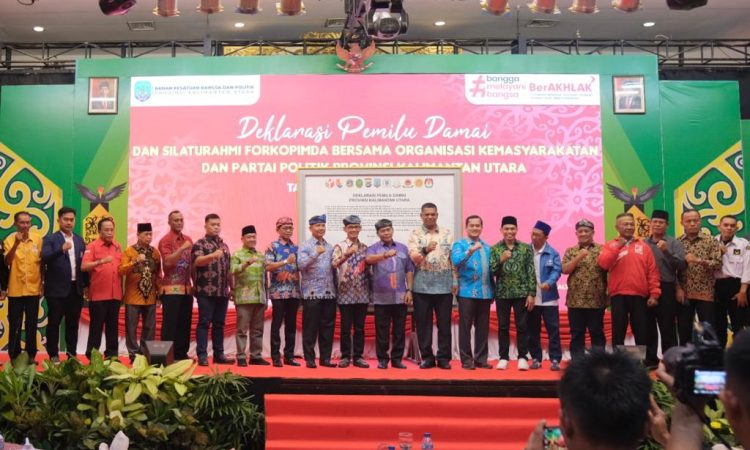 TARAKAN – Dalam rangka mensukseskan Pemilu 2024, Pemerintah Provinsi Kalimantan Utara (Kaltara) menggelar Deklarasi Pemilu Damai dan Silaturahmi Forkopimda Bersama Organisasi Kemasyarakatan dan Partai Politik Provinsi Kalimantan Utara di Kota Tarakan pada selasa (5/12) malam.