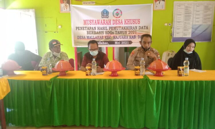 BONE- Berandankrinews.com. Pemerintah Desa Mallahae Kecamatan Kajuara telah menggelar Musyawarah Desa Khusus Penetapan Hasil Pemutakhiran Data Berbasis SDGs Tahun 2021. musyawarah yang digelar diaula kantor Desa Mallahae tersebut