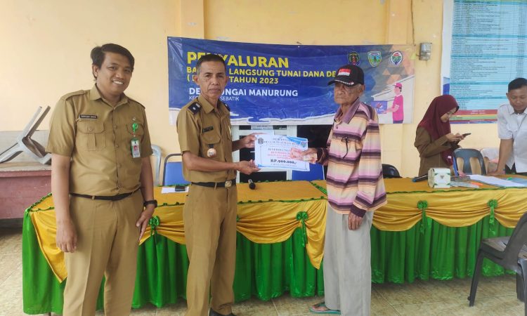 NUNUKAN – Bertempat di Kantor Desa Sungai Manurung, Kecamatan Sebatik, bantuan langsung tunai (BLT) dari Dana Desa (DD) diberikan untuk keluarga penerima manfaat (KPM), Senin (23/10/2023).