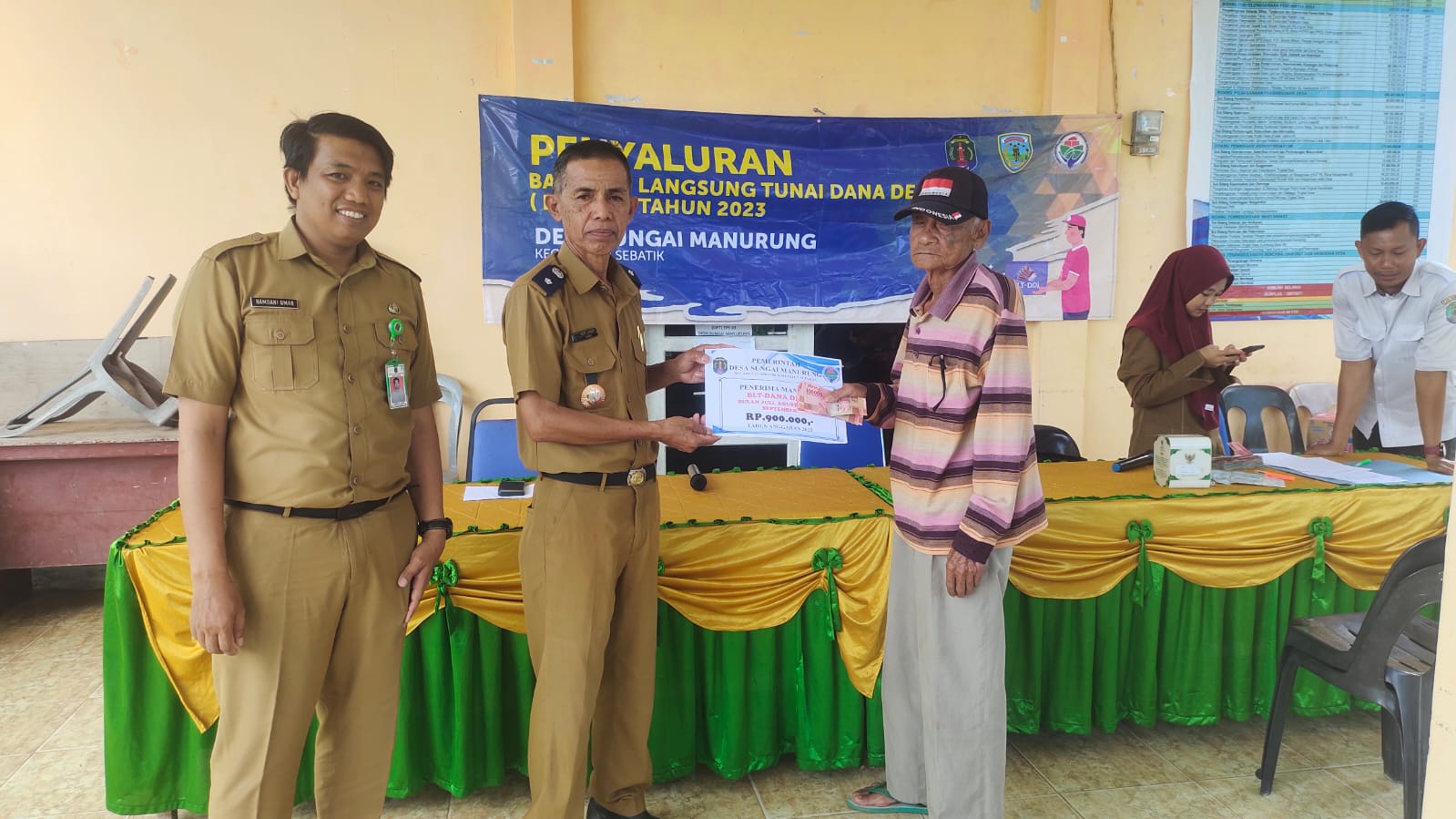 Untuk bantuan desa tersebut disalurkan sebanyak Rp 900.000 (Sembilan Ratus Ribu Rupiah) kepada tiap keluarga serta diberikan langsung di Kantor Desa Sungai Manurung.