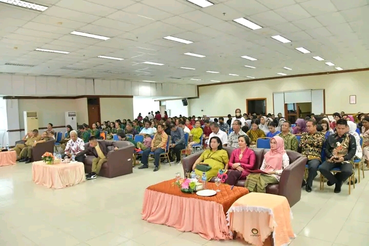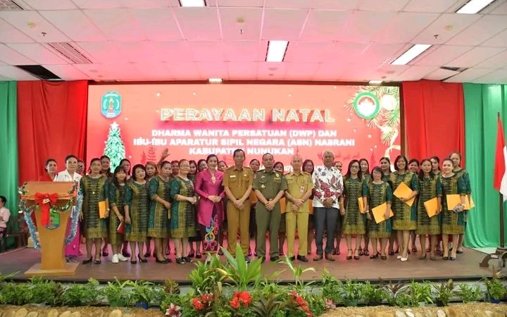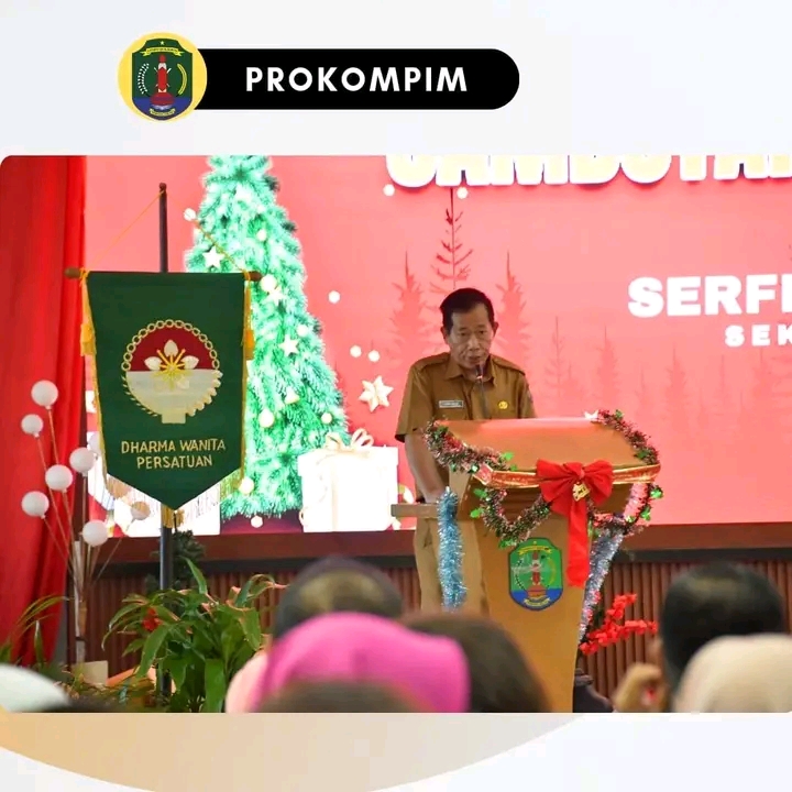 NUNUKAN – Mewakili Bupati Nunukan, Sekretaris Daerah Kabupaten Nunukan Serfianus menghadiri Perayaan Natal Dharma Wanita Persatuan (DWP) dan ibu ibu Aparatur Sipil Negara (ASN) Nasrani Kabupaten Nunukan yang dilaksanakan di Ruang Pertemuan di Lantai V Kantor Bupati Nunukan, Selasa 9 Januari 2024.