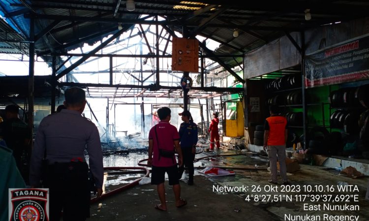 NUNUKAN – Kebakaran Kembali melanda Sebuah Bengkel Mobil dan percetakan di Jalan Tvri, Kecamatan Nunukan, Kabupaten Nunukan. Diperkirakan, api diakibatkan oleh korsleting listrik yang berasal dari Atap Plafon, Kamis (26/10/2023)pagi.