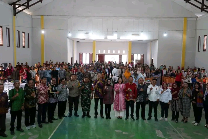 NUNUKAN- Bupati Nunukan Hj Asmin Laura Hafid dengan didampingi oleh Sekretaris Daerah Kabupaten Nunukan Serfianus mulai melaksanakan safari natal tahun 2023. Pelaksanaan safari natal yang pertama dilaksanakan di Wilayah 4 dengan 8 kecamatan yang berkumpul di Gedung Balai Pertemuan Umum (BPU) Kecamatan Lumbis, Jum’at (08/12)