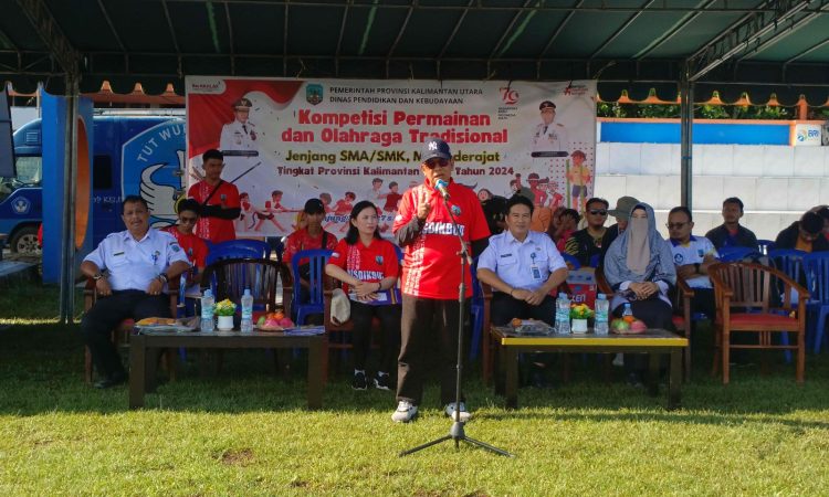 TANJUNG SELOR – Memeriahkan Hari Ulang Tahun (HUT) Kemerdekaan Republik Indonesia (RI) ke 79, Dinas Pendidikan dan Kebudayaan (Disdikbud) Kalimantan Utara (Kaltara) melaksanakan Kompetisi Permainan dan Olahraga Tradisional antar Sekolah Menengah Atas (SMA), Sekolah Menengah Kejuruan (SMK), Madrasah Aliyah dan sederajat Tingkat Provinsi Kaltara Tahun 2024.