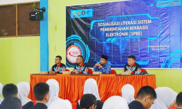 NUNUKAN – Pemerintah Provinsi (Pemprov) Kalimantan Utara (Kaltara) melalui Dinas Komunikasi, Informatika, Statistik dan Persandian (DKISP) Kaltara menggelar kegiatan Sosialisasi Literasi Sistem Pemerintahan Berbasis Elektronik (SPBE) di Aula SMKN Nunukan, Senin (02/06/2025).