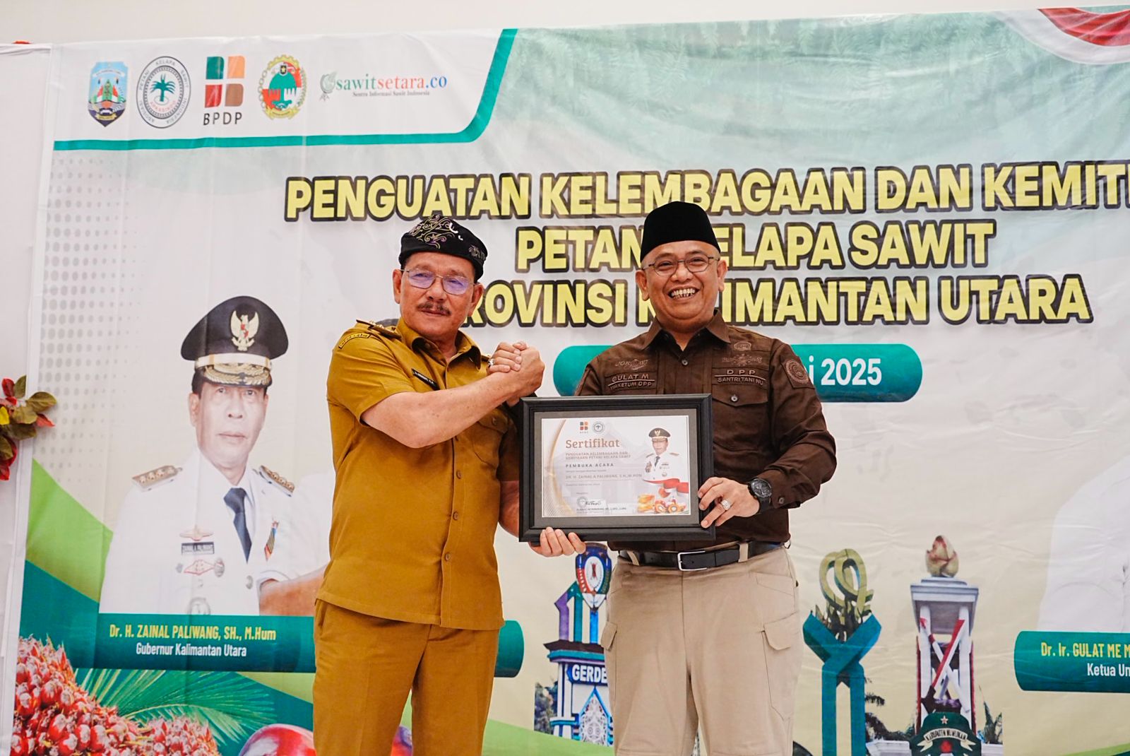 Pemprov Kaltara berkomitmen dalam memperkuat pendampingan, penguatan kapasitas kelembagaan petani, serta mendukung peran Apkasindo sebagai wadah perjuangan aspirasi petani sawit.