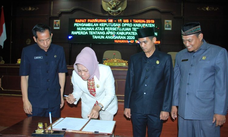 NUNUKAN–Rapat Paripurna Ke – 11 Masa Sidang I DPRD Kabupaten Nunukan akhirnya menyetujui Rancangan Peraturan Daerah (Raperda) Tentang APBD Kabupaten Nunukan Tahun 2020 sebesar Rp. 1,4 triliun Sabtu (07/12/2019).