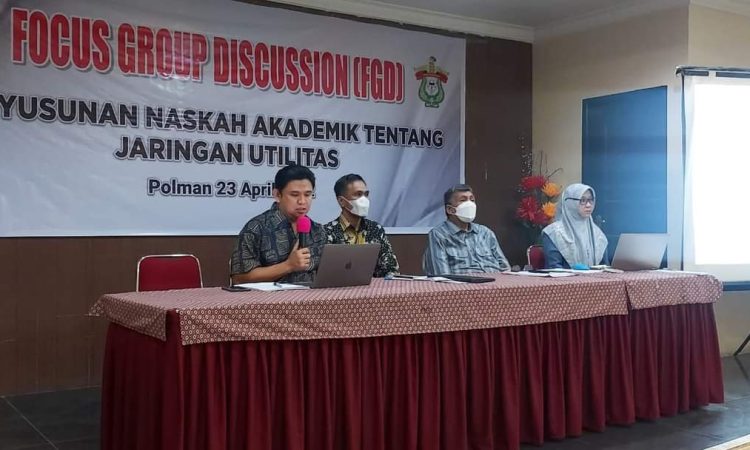 Sekretraiat DPRD Sulbar bekerjasama dengan Lembaga Penelitian dan Pegabdian Kepada Masyarakat (LPPM) Universitas Hasanuddin mengelar Focus Group Discussion (FGD) terkait Penyusunan Naskah Akademi (NA) tentang Jaringan Utilitas di Meeting Room Hotel Lilianto, Polewali Mandar, Sabtu 23 April 2021.