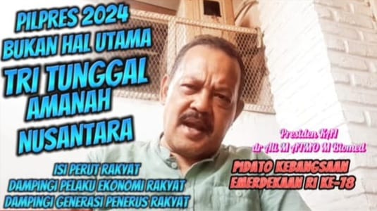 Tri Tunggal Amanah Nusantara, isi perut rakyat, dampingi pelaku ekonomi rakyat dan dampingi generasi penerus bangsa adalah jauh lebih utama dari perhelatan akbar Pilpres 2024, tanggal 14 Februari 5-6 bulan ke depan. Siapapun yang akan dipilih rakyat jadi Presiden RI itu adalah momentum dan rutinitas. Namun yang paling mendasar adalah siapapun yang terpilih harus berpegang teguh pada amanah Pembukaan UUD 1945. Harus berpegang teguh dan mewujudkan Tri Tunggal Amanah Nusantara.