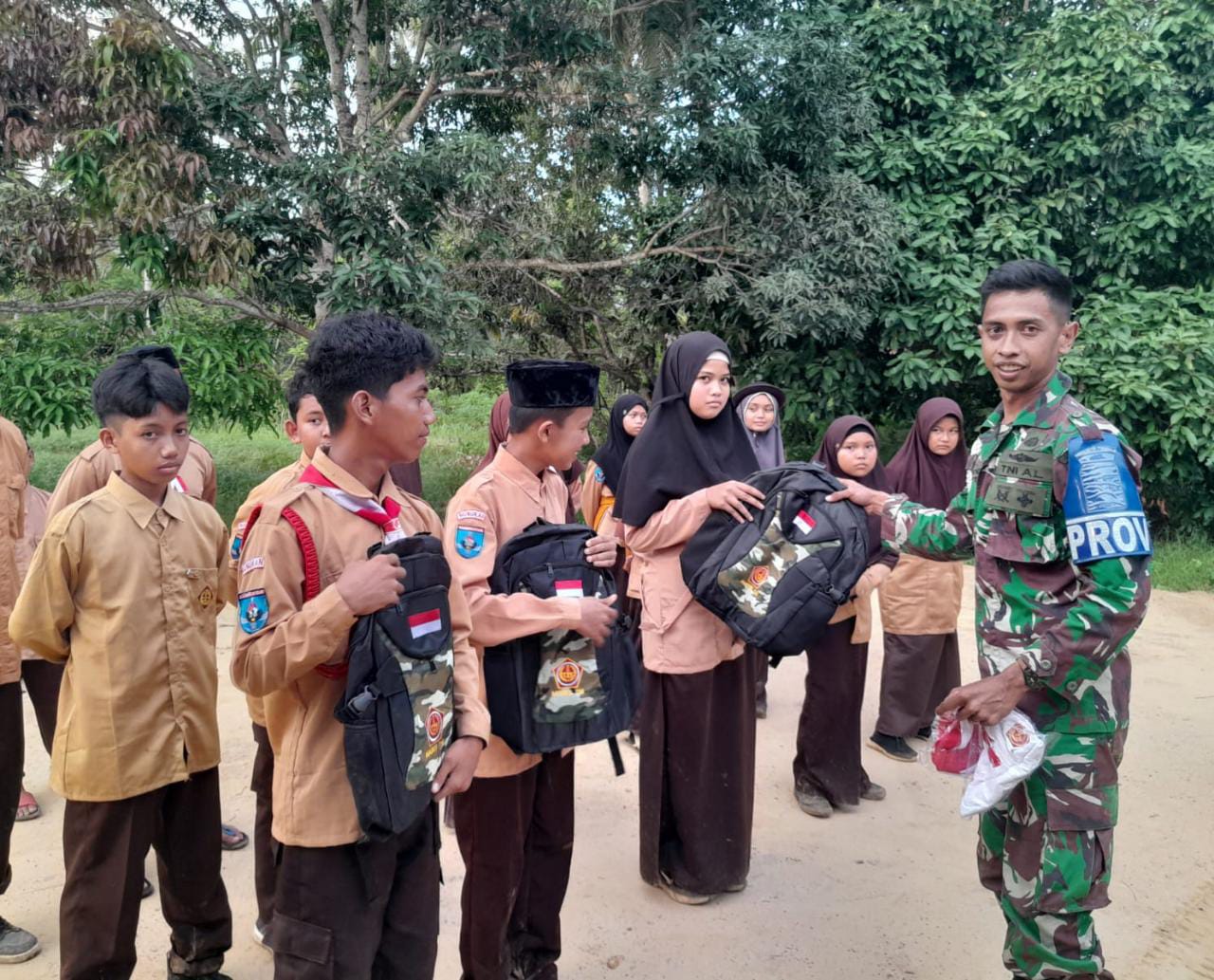 Kemudian siswa siswi dan guru Sekolah Menengah Pertama Islam Terpadu (SMPIT) Al-Huda Sebatik mendapatkan cinderamata berupa tas dan kaos bermotif NKRI yang diberikan langsung oleh Bintara Provos (Baprov) Serda Mar Wahyu Dwi Suswondo sebagai wujud apresiasi dari TNI untuk lembaga pendidikan atas kepedulian terhadap wilayah perbatasan.