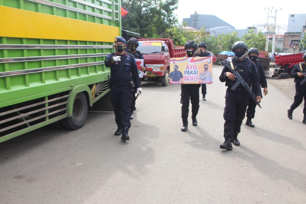 ” Selamat pagi pak, saya liat bapak tidak pakai masker di tempat umum, untuk kebaikan kita bersama, ini saya punya masker, bapak pakai ya dan ingat tetap terapkan 3 M ( mencuci tangan, memakai masker dan menjaga jarak) agar bapak aman dari paparan Covid 19,” himbau Danyon C Pelopor kepada warga yang abai dengan prokes.