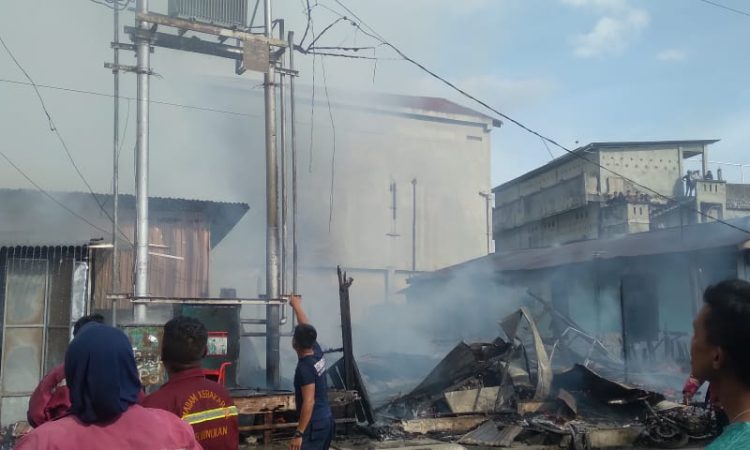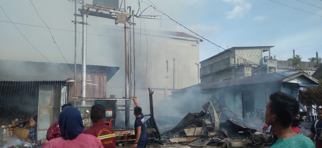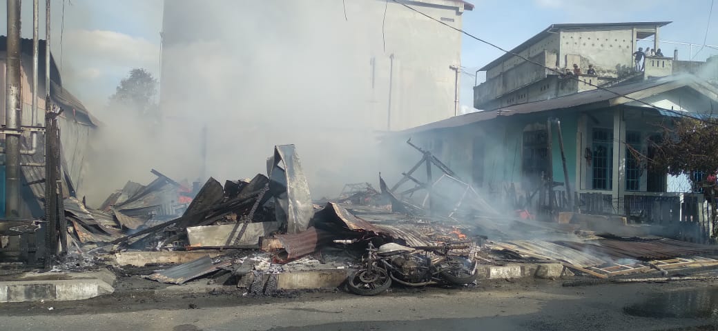 “Saat kami tiba di TKP, kobaran api sudah besar, ada dua unit rumah dan satu kios grosir, hanya satu unit rumah tinggal yang bentuknya permanen, lalu yang ludes terbakar api itu satu rumah semi permanen dan satu kios grosir termasuk barang jualan di dalamnya,” ungkapnya.