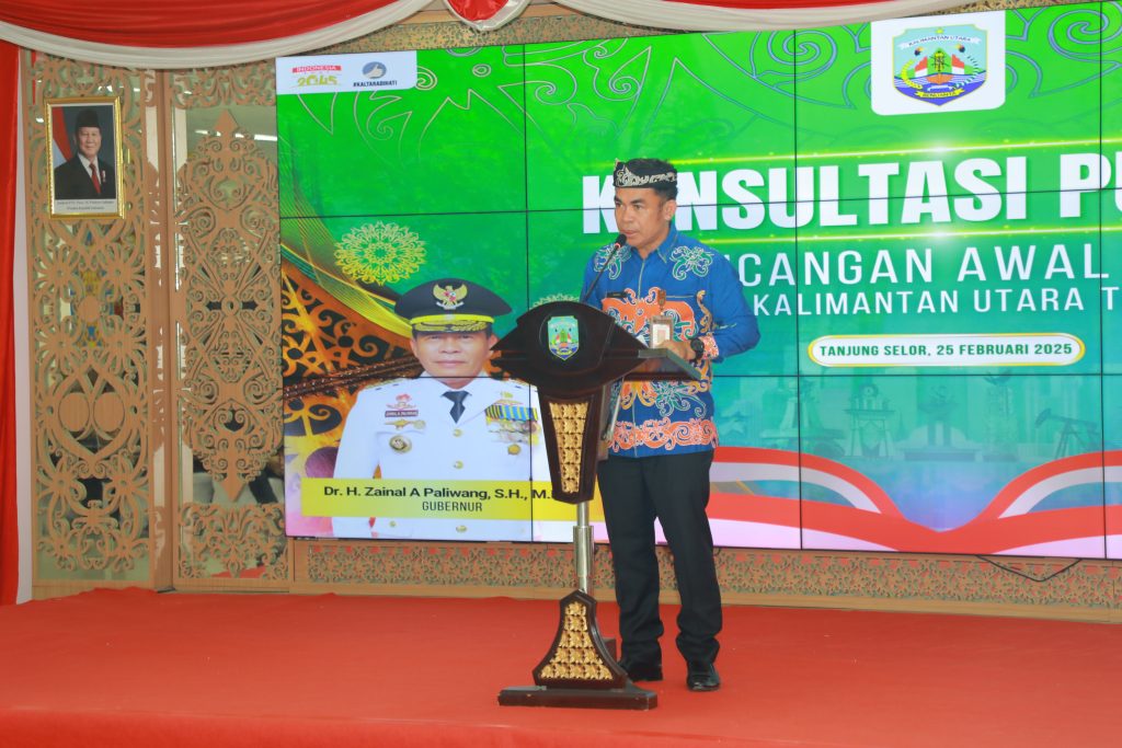 TANJUNG SELOR – Gubernur Kalimantan Utara (Kaltara) diwakili Asisten Bidang Perekonomian dan Pembangunan Setdaprov Kaltara, Dr. Bustan, S.E.,M.Si., membuka secara langsung Forum Konsultasi Publik Rancangan Awal Penyusunan Dokumen Rencana Kerja Pemerintah Daerah (RKPD) Provinsi Kaltara Tahun 2026, di Gedung Gabungan Dinas, Selasa (25/2) pagi.