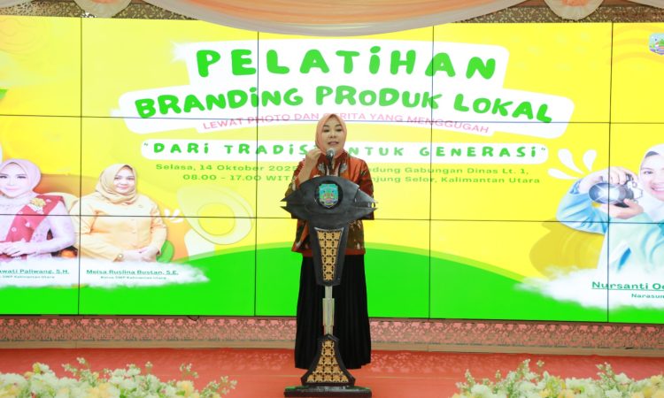 TANJUNG SELOR – Penasihat Dharma Wanita Persatuan (DWP) Kalimantan Utara (Kaltara) Hj. Rachmawati Zainal, S.H membuka “Pelatihan Dan Lomba Branding Produk Lokal Lewat Foto Dan Cerita Yang Menggugah”, digelar di Ruang Pertemuan lantai 1 Gedung Gabungan Dinas, Selasa (14/10).