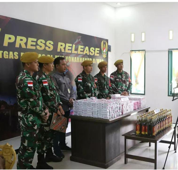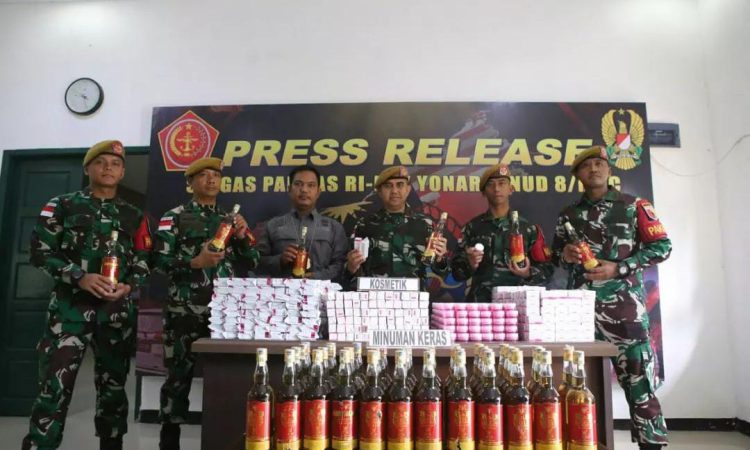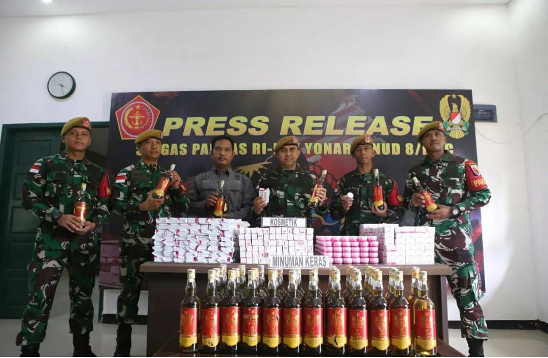 “pemilik barang yang ada di 3 kendaraan grand max tersebut diperintahkan untuk mengambil di Kotis Satgas Pamtas Yonarhanud 8/MBC, namun Kosmetik ilegal dan Miras tidak ada yang mengambil/tidak tahu siapa pemiliknya, rencana besok pagi barang bukti akan diserahkan ke Beacukai,” lanjut Personel Satgas Pamtas RI – MLY Yonarhanud 8/MBC.