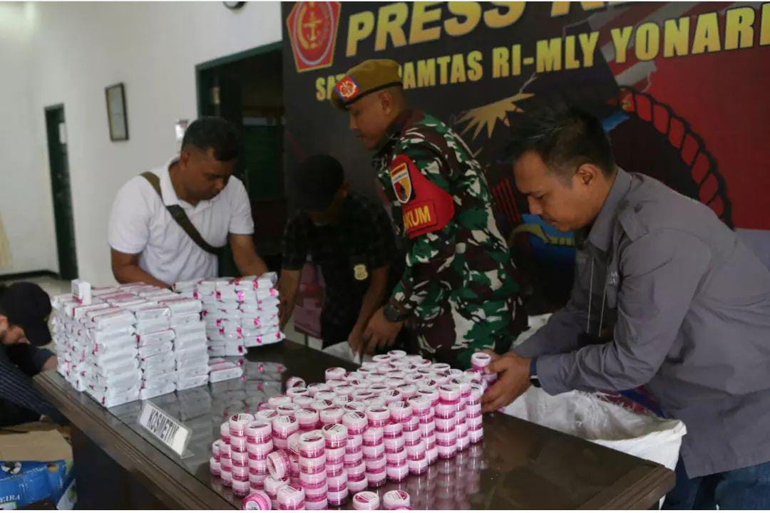 Adapun Barang Bukti (BB) yang ditemukan berupa Minuman keras sebanyak 47 botol RNB, kosmetik ilegal sebanyak 1586 pcs dengan rincian berupa Briliant Koji Acid Soap sebanyak 392 pcs, Briliant Sunscreen Gel Cream sebanyak 398 pcs dan Briliant Hydroquinone Tretinon-Topical Solution (Toner) sebanyak 398 pcs.