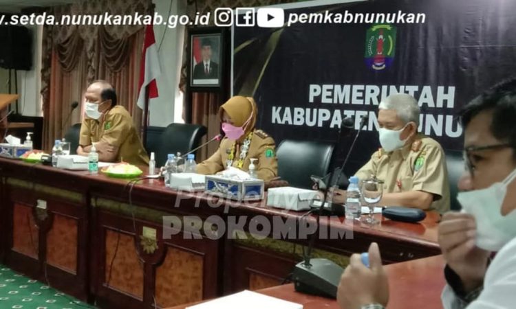 NUNUKAN – Bupati Nunukan Hj Asmin Laura Hafid memimpin rapat bersama unsur Forkopimda, Instasi Vertikal, Kepala OPD, para camat, dan Lurah yang laksanakan secara virtual dalam upaya pencegahan Omicron dan percepatan vaksinasi, yang dilaksanakan di Lantai 4 Kantor Bupati Nunukan, Senin (14/02).