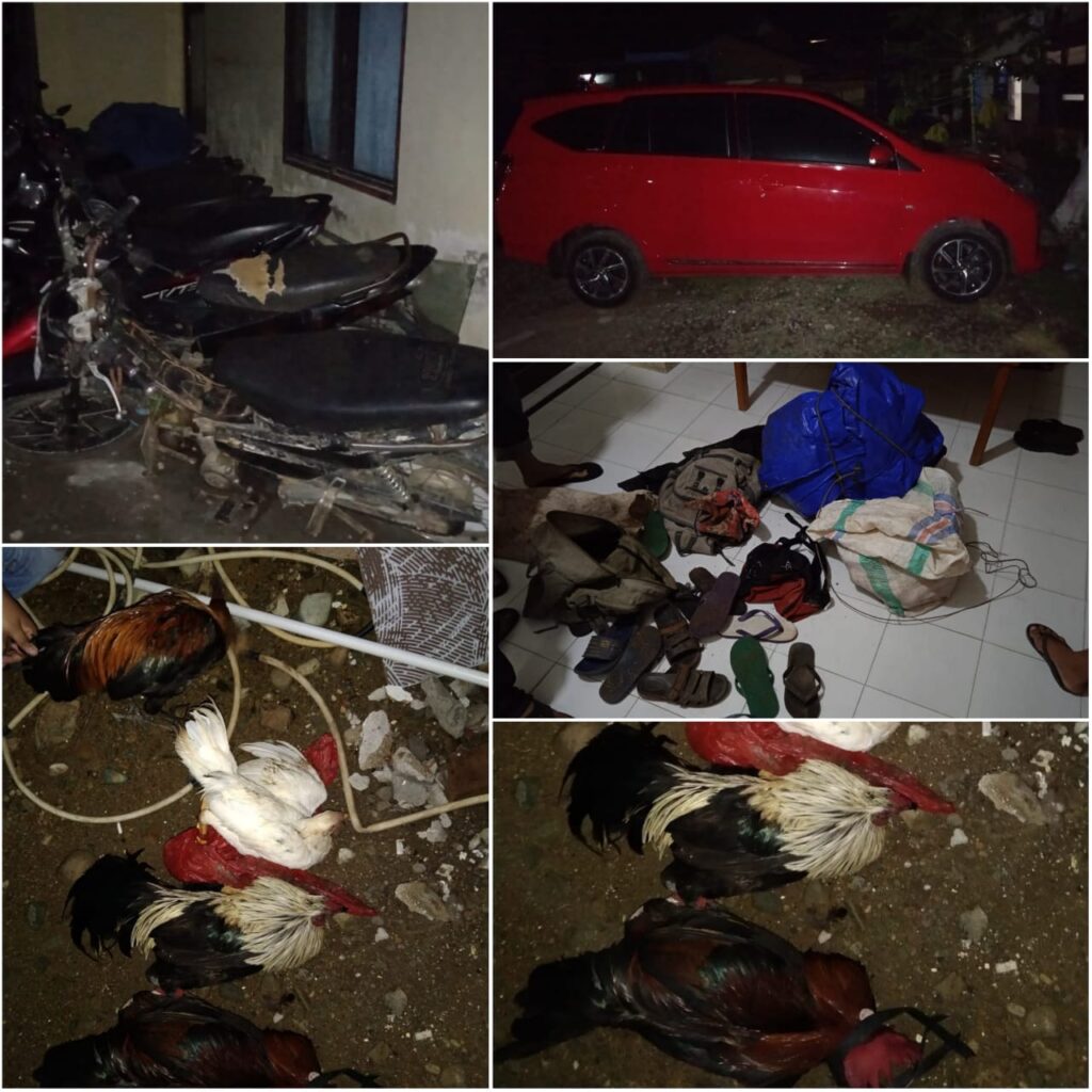 Selain itu, berhasil pula diamankan beberapa barang bukti yang diduga milik para pelaku diantaranya 8 (delapan) unit R2 berbagai merk, 1 (Satu) unit R4 merek toyota calya, 4 (empat) ekor ayam hidup, 7 (tujuh) ekor ayam mati, 3 unit HP (1 merk samsung, 1 merk nokia, 1 merk vivo), dan tas tempat ayam sebanyak 1 (satu) buah.