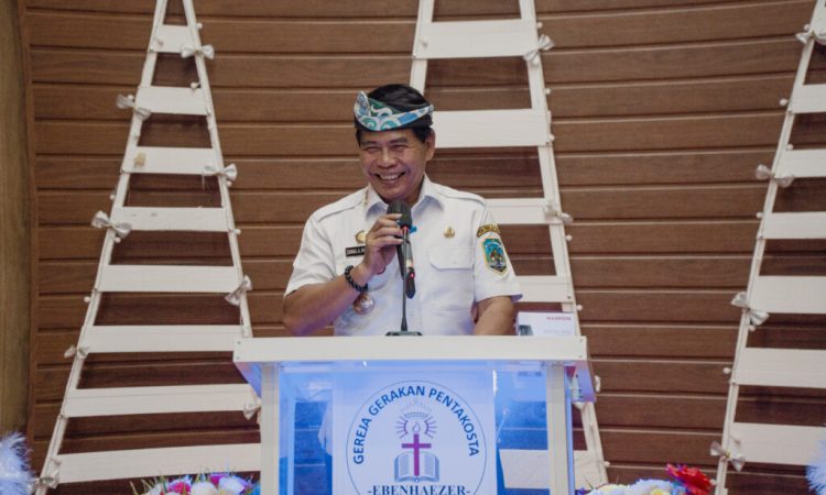TARAKAN-Gubernur Kalimantan Utara (Kaltara) Drs. H. Zainal A. Paliwang, S.H., M.Hum. menghadiri Perayaan Natal Dan Syukur Tuhan Baru Persekutuan Hamba-Hamba Tuhan Daerah Lapangan di Gereja Gerakan Pentakosta Eben Haezer Kota Tarakan pada hari Rabu (10/01/2024) malam.