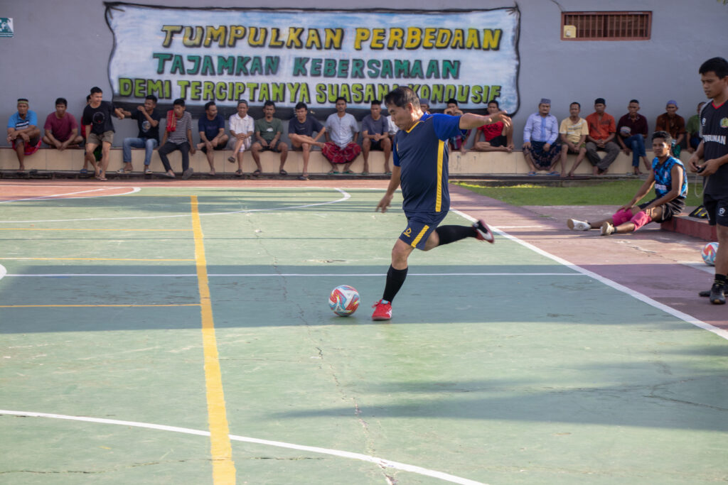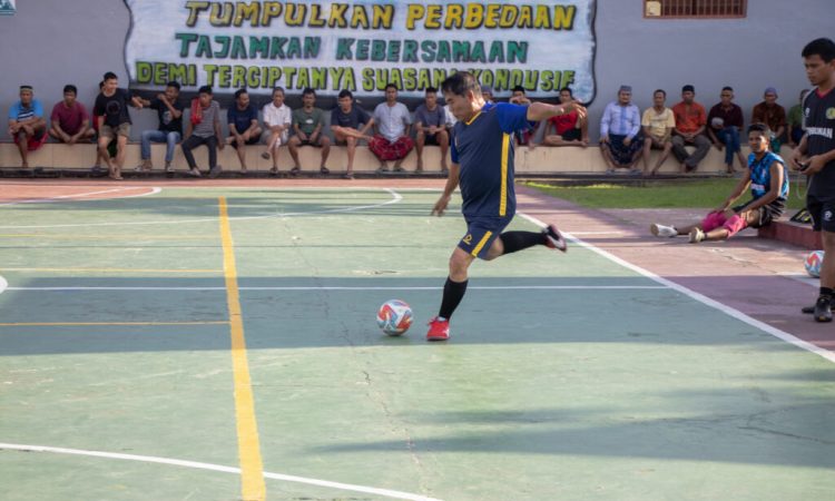 Untuk menumbuhkan semangat motivasi, Gubernur didampingi Asisten bidang Perekonomian dan Pembangunan Setda Provinsi Kaltara, Dr. Bustan, SE., M.Si., ikut bermain futsal kepada WBP.