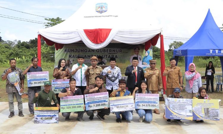 TIDUNG PALE – Gubernur Kalimantan Utara (Kaltara) Drs. H. Zainal A. Paliwang, SH., M.Hum menyerahkan sejumlah bantuan sektor pertanian dan peternakan, di Kabupaten Tana Tidung, Senin (27/11).