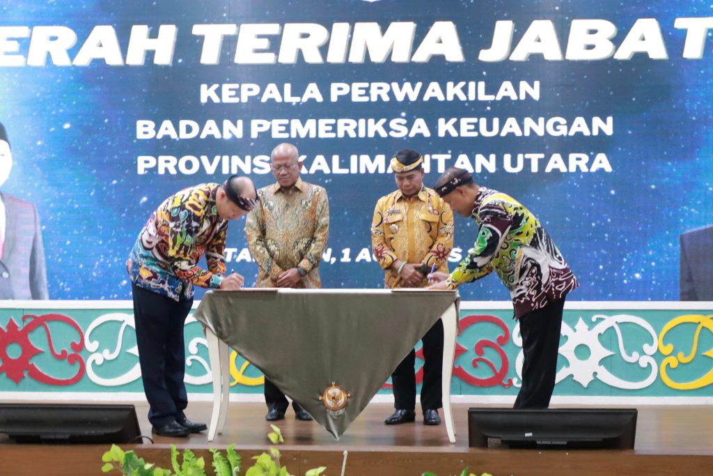 Serah terima jabatan disaksikan langsung oleh Anggota VI Badan Pemeriksa Keuangan (BPK) RI, Dr. Pius Lustrilanang, S.IP., M.Si., CFrA., CSFA, bertempat di Auditorium Kantor BPK Perwakilan Provinsi Kaltara di Tarakan, Kamis (1/8/2024). Hadir dalam acara tersebut jajaran Forkopimda Kaltara serta Kepala Daerah Kabupaten/Kota di wilayah Provinsi Kaltara.