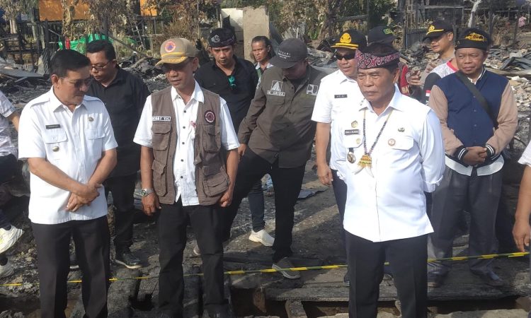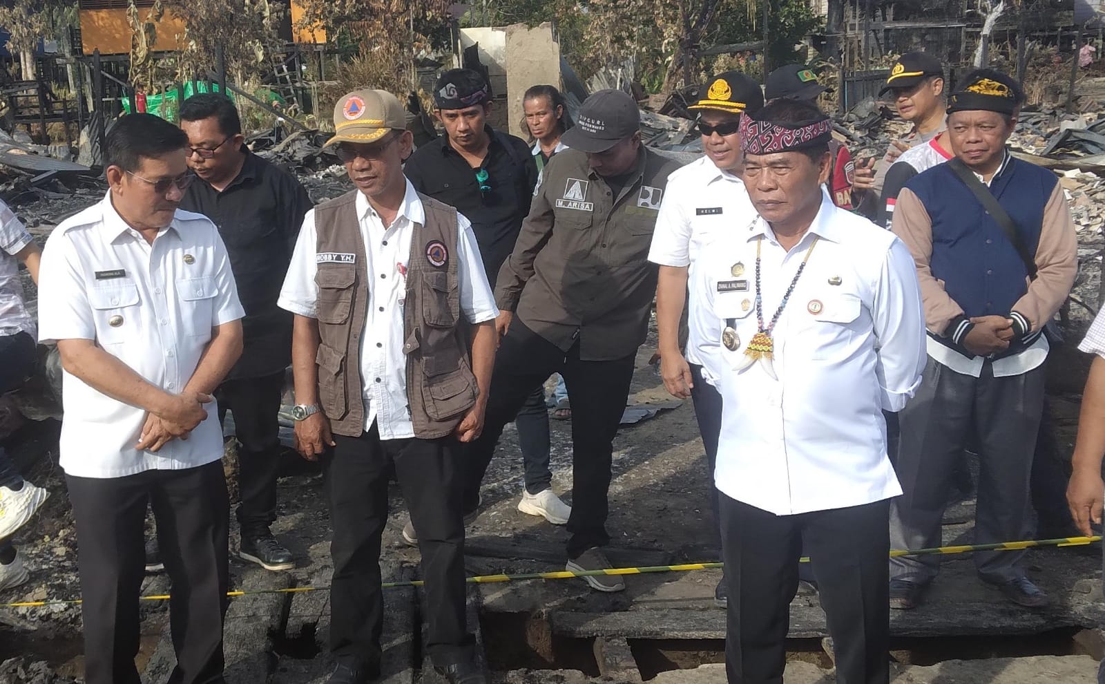 LONG BELUAH – Gubernur Kalimantan Utara (Kaltara), Zainal A Paliwang didampingi Wakil Bupati Bulungan Ingkong Ala meninjau lokasi kebakaran