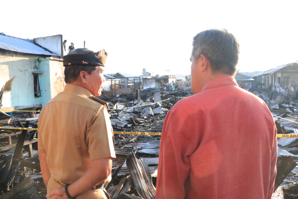 TARAKAN — Disela kegiatannya, Gubernur Kalimantan Utara (Kaltara) Drs. H. Zainal A. Paliwang, S.H., M.Hum sambangi lokasi kebakaran di Selumit Pantai, Kota Tarakan pada, Selasa (22/8/2023) sore.