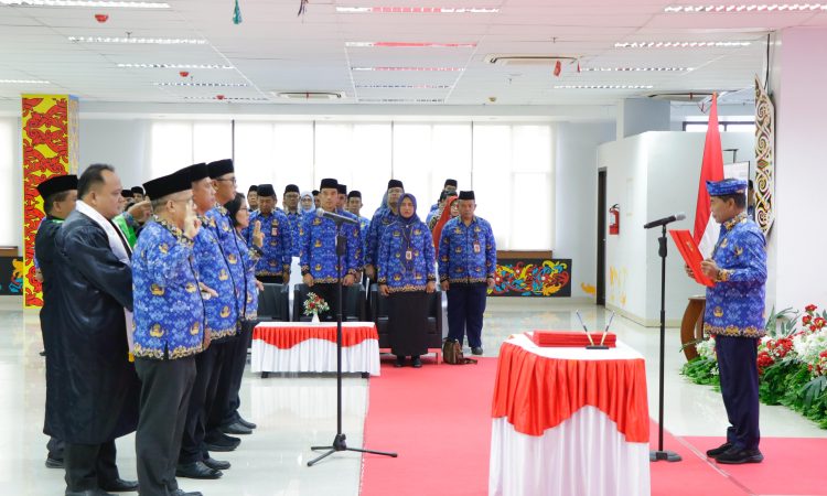 TANJUNG SELOR – Gubernur Kalimantan Utara (Kaltara) Dr. H. Zainal A. Paliwang, S.H., M.Hum memimpin upacara pelantikan dan pengambilan sumpah janji Pejabat Tinggi Pratama, Administrator dan Pengawas di lingkungan Pemerintah Provinsi (Pemprov) Kaltara di Gedung Gadis, Jumat (20/2).