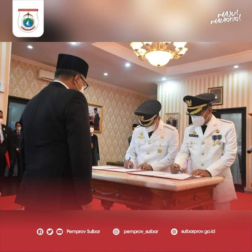 BerandaNKRINEWS.COM,-para pimpinan daerah yang dilantik yakni bupati dan wakil bupati Mamuju, Mamuju Tengah, dan Pasangkayu hasil pemilihan serentak tahun 2020 di Rujab Gubernur Sulbar, Jumat, 26 Februari 2021.
