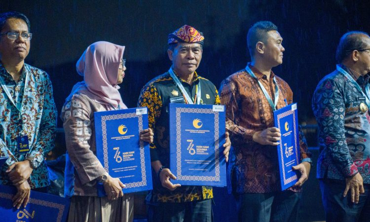 JAKARTA – Gubernur Kalimantan Utara (Kaltara), Dr. H. Zainal A. Paliwang, S.H., M.Hum., menerima penghargaan atas komitmennya mendorong kabupaten/kota di Provinsi Kaltara menjadi Kabupaten/Kota Peduli HAM pada puncak peringatan Hari HAM Sedunia ke-76 yang digelar oleh Kementerian HAM RI.